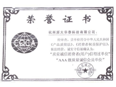 AAA級(jí)質(zhì)量證書
